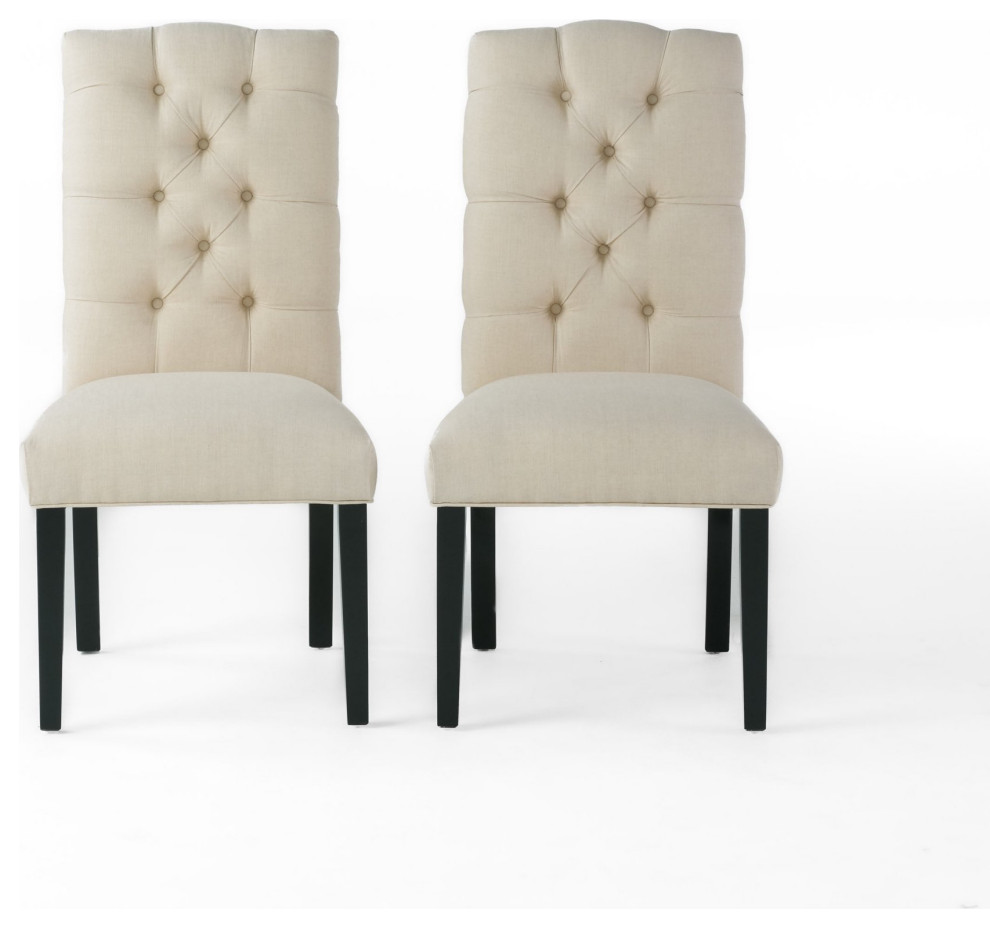 2 Pack Dining Chair Cushioned Linen Seat With Button Tufted High Back Natural Transitional Dining Chairs by Decor Love Houzz