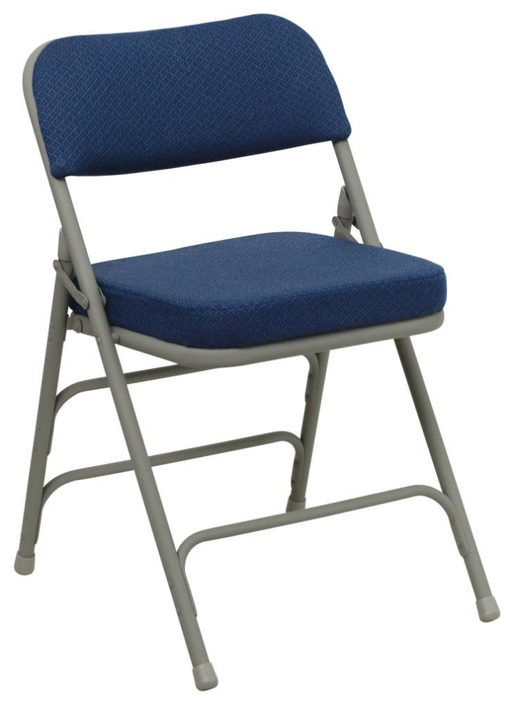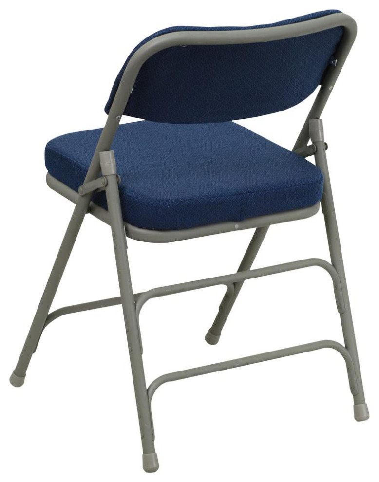 Ensure that your guests, clients or parishioners pay more attention to you than the clock with these ultra-comfortable folding chairs. Folding chairs are a practical choice for social activities and everyday use in the home due to their compact storage capabilities. These metal folding chairs are commercial grade to withstand heavy and daily usage in any industry. Take your regular group meetings outdoors instead of staying in a stuffy room or host beautiful outdoor events with the arrangement of these padded folding chairs. While suitable for outdoor use store indoors to protect the frame from extreme moisture. Its 18-gauge triple braced curved steel frame supports up to 300 pounds while the non-marring floor glides protect your flooring from scuffs and scrapes. The uses are endless with multi-purpose chairs to fulfill your seating needs for your business or home. With nothing to assemble these chairs come ready to service your needs.