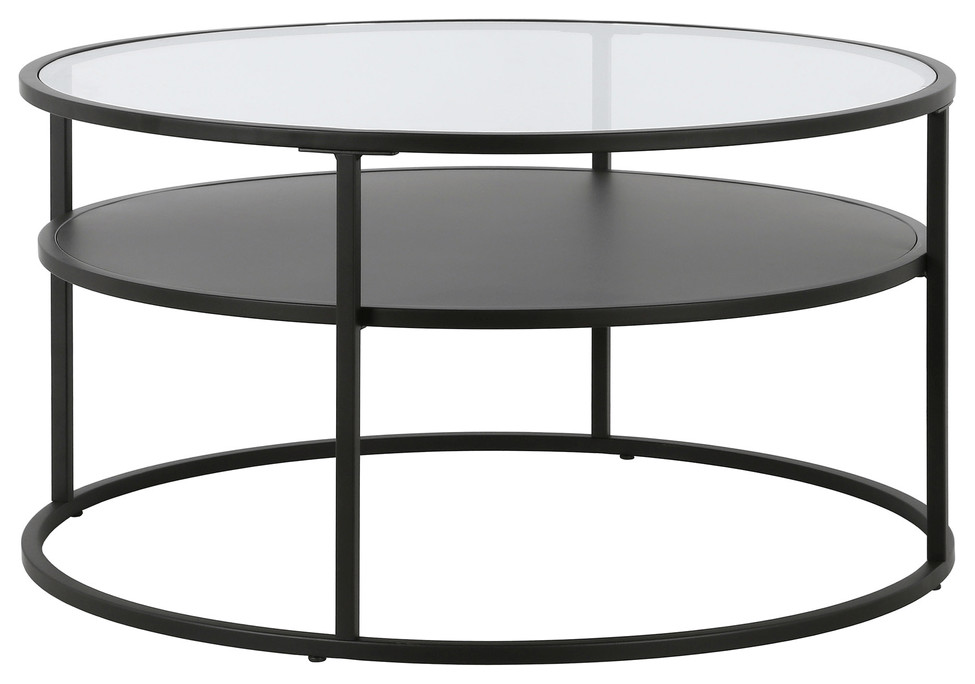 32 quotBlack and Glass Round Two Layer Coffee Table With Shelf Coffee Tables by HomeRoots Houzz