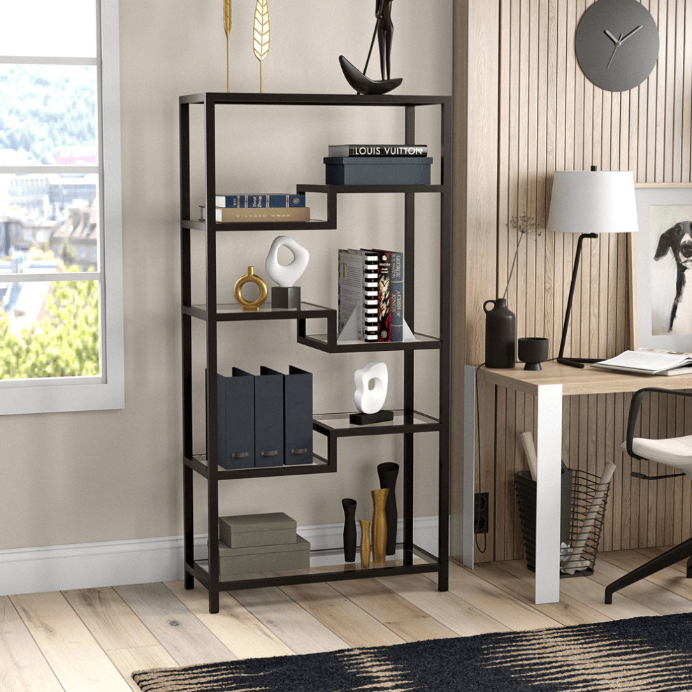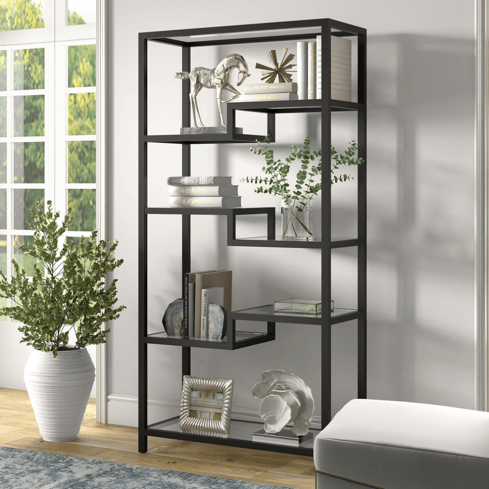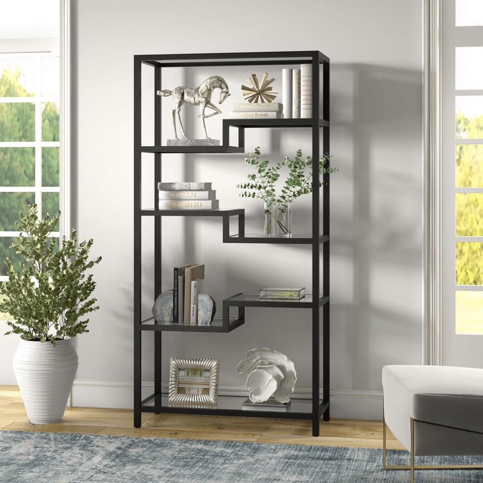 68 quotBlack Metal And Glass Seven Tier Etagere Bookcase Transitional Bookcases by HomeRoots Houzz