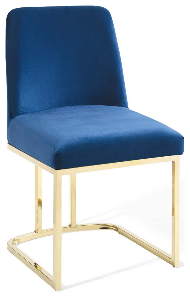 Striking lines and simple form blend to produce the Amplify Glam Deco Performance Velvet Upholstered Sled Base Dining Chair. A boldly flowing gold stainless steel sled base supports the premium seating experience produced by the soft and stain-resistant performance velvet polyester upholstery for a dining chair suitable for a variety of decor styles. Dense foam padding and gentle curves accent the glam deco elegance of the Amplify Dining Side Chair. Whether the Amplify Accent Chair is gracing your dining room, living room, lounge room, or office, visitors and guests will comment on this eye-catching addition. Chair Weight Capacity: 331 lbs. Assembly Required.