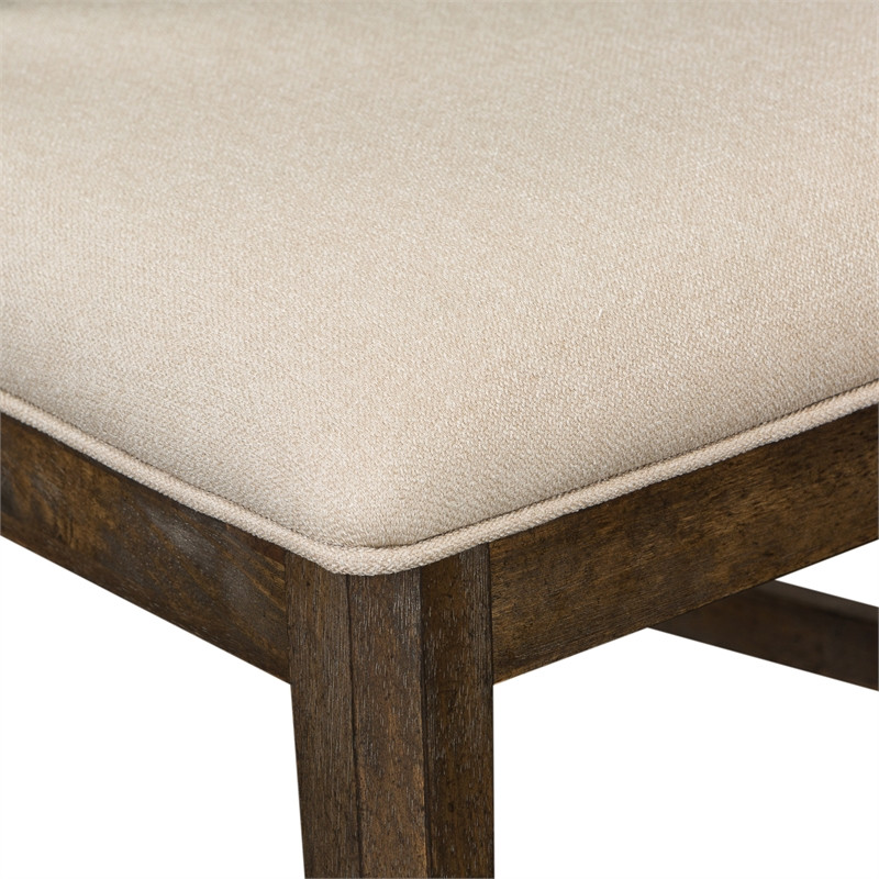 Sit in comfort and style with the Artisan Prairie lattice back side chair. Crafted of rubberwood solids, this piece features a wire brushed aged oak finish with gray dusty wax, nylon chair glides to protect your flooring, cream chenille upholstery, and a grid overlay design. Prairie offers a natural feeling created by the living space as well as the furnishings that attribute to it.
