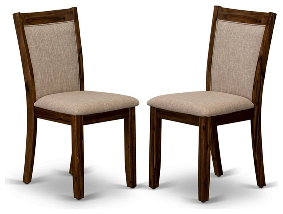 - These modern chairs features are light tan finish linen fabric seat and sand blasting antique walnut finish wooden 4 legs which creates a high quality color combination to provide a modern appeal to your dining room or kitchen area.