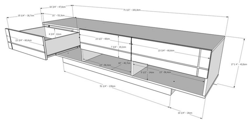 - Product Dimensions : 17.25"H x 71.5"W x 18.75"D