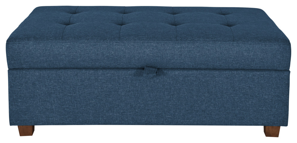 The Aubin Ottoman is designed with a modern style that works in any room of your home. The button-tufted design is a pleasing accent to the overall look, while the rectangular shape makes it perfect to use as a storage coffee table in your living room. There's plenty of space to hold anything you'd like to tuck away, allowing you to keep your area clean and organized. Upholstered in a durable polyester fabric that's easy to keep clean, it's the ideal addition to any modern home's decor. So take a seat, put your feet up, and enjoy the comfy foam cushioning our large storage ottoman provides.