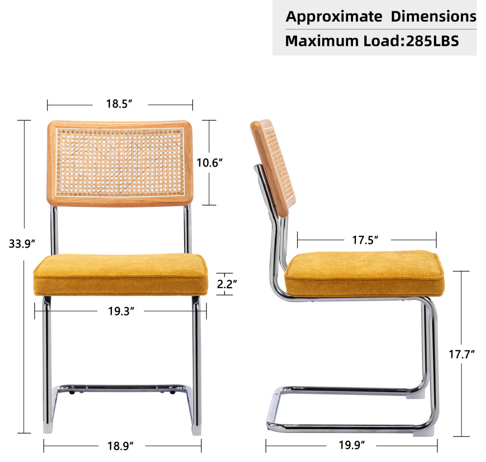 Whatever you're craving, either refined cuisine or home-cooked comfort food, wait no more to sit back, relax and make your palate pleased on our Bauhaus Cantilevered Side Chairs Set of 2. Influenced by iconic Bauhaus style, our dining chairs provide the visual trick of the padded seat and woven cane back practically floating in air. The design is celebrated for the cantilevered tubular steel and cushioned comfort. Now welcome yourself to chillax and work up an appetite on our cantilevered side chairs!
