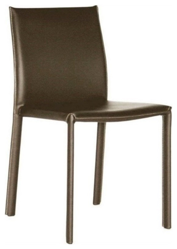 Bowery Hill Leather Dining Chair in Brown (Set of 2) Contemporary Dining Chairs by Homesquare Houzz