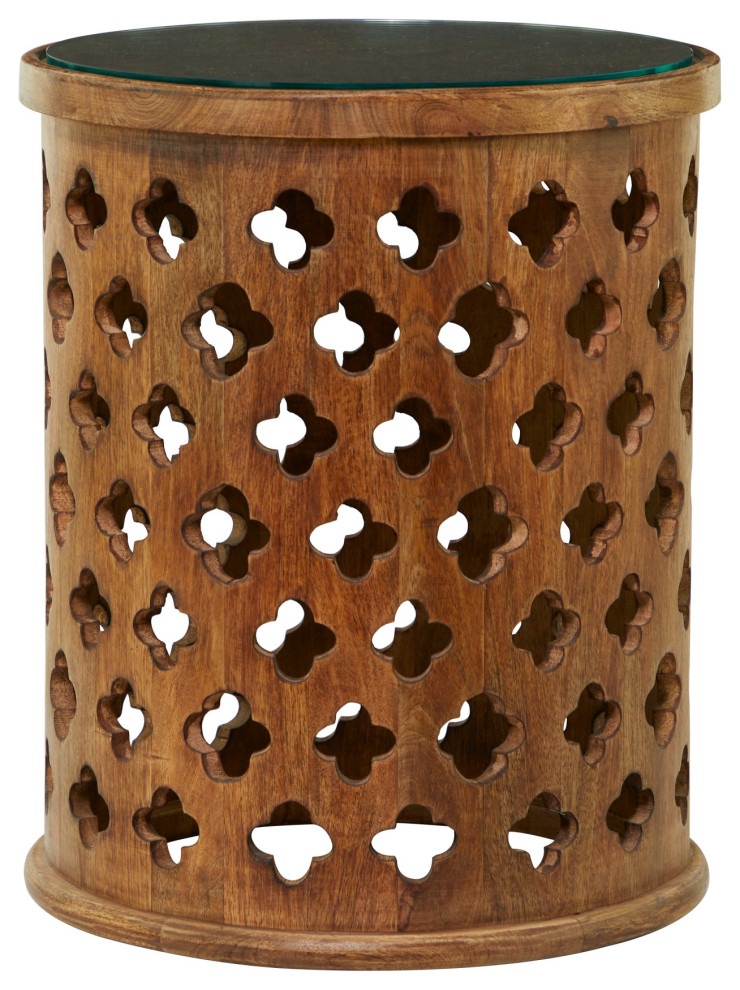 A compact friendly table providing you with additional surface storage space any where in your home. Useful and elegant, side tables are more than just a place to throw your mail or place a lamp. A compact brown round accent table that can easily place beside your sofa or bed and add the right dose of style to your interior. This item ships in 1 carton. Suitable for indoor use only. Maximum weight limit is 100 lbs. Made in India. This is a single accent table. Rustic style.