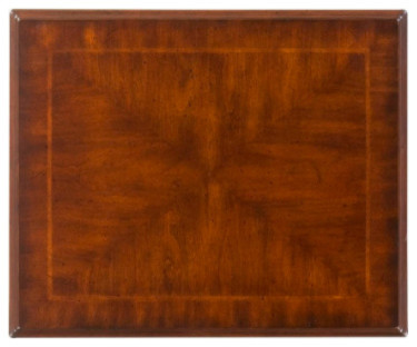 Crafted from selected hardwood solids and choice cherry veneers. Table tops feature a four-way book matched cherry veneer with a maple inlay and a cross grain cherry veneer border.