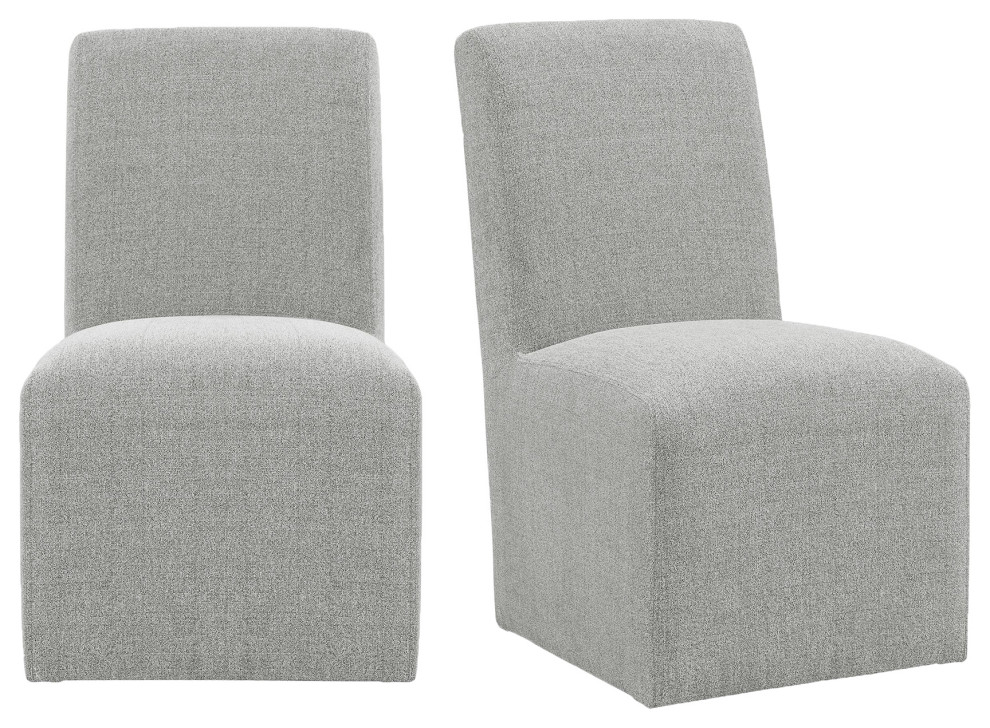 The Picket House Furnishings Cade Side Chair Set is a great addition to your dining table. This set includes two dining side chairs. The transitional design of the chair, easily accessorizes with any standard dining table style. Both chairs are fully upholstered from top to bottom in a linen like fabric, which will give you and your guests comfort while at the table. While it appears these chairs sit flush on the floor, they actually have casters underneath the chair base for mobility. Therefore, you can arrange the chairs however you choose in your dining area. Be sure to check out the matching arm chair set as well!