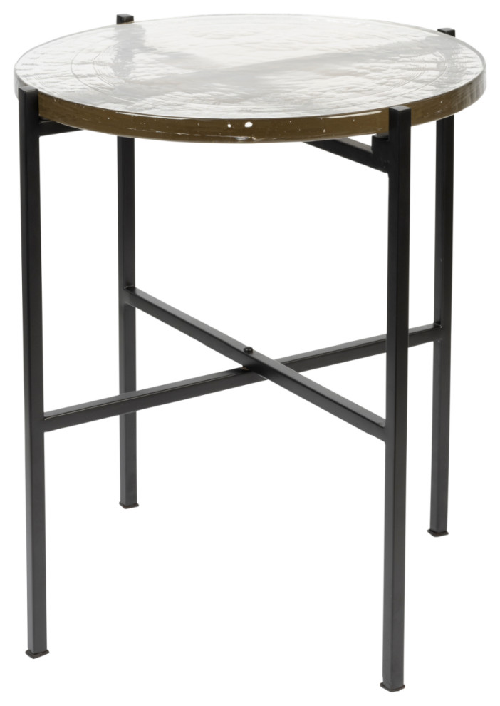 For the side table Vidrio we took the ‘small is beautiful approach’. The table might not be big in size, but it is huge in style. We crafted the tabletop by casting leftover glass acquired from the glass and bottle industries. The casting results in rough-looking, thick glass, in which the original flow of the poured fluid glass is instilled. The minimalistic frame is made out of high-quality metal and is available in two finishes, brass, and cast-iron black.