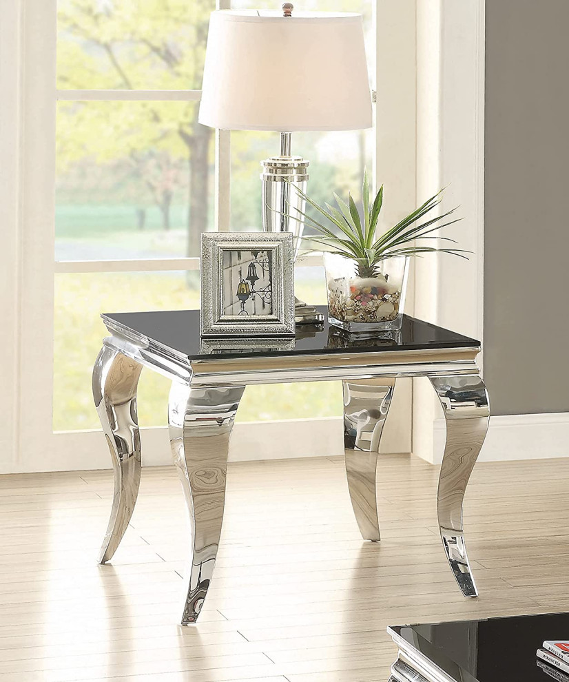 Contemporary End Table  Tapered Chrome Finished Legs With Black Glass Top   Industrial   Side Tables And End Tables   by Declusia  Houzz