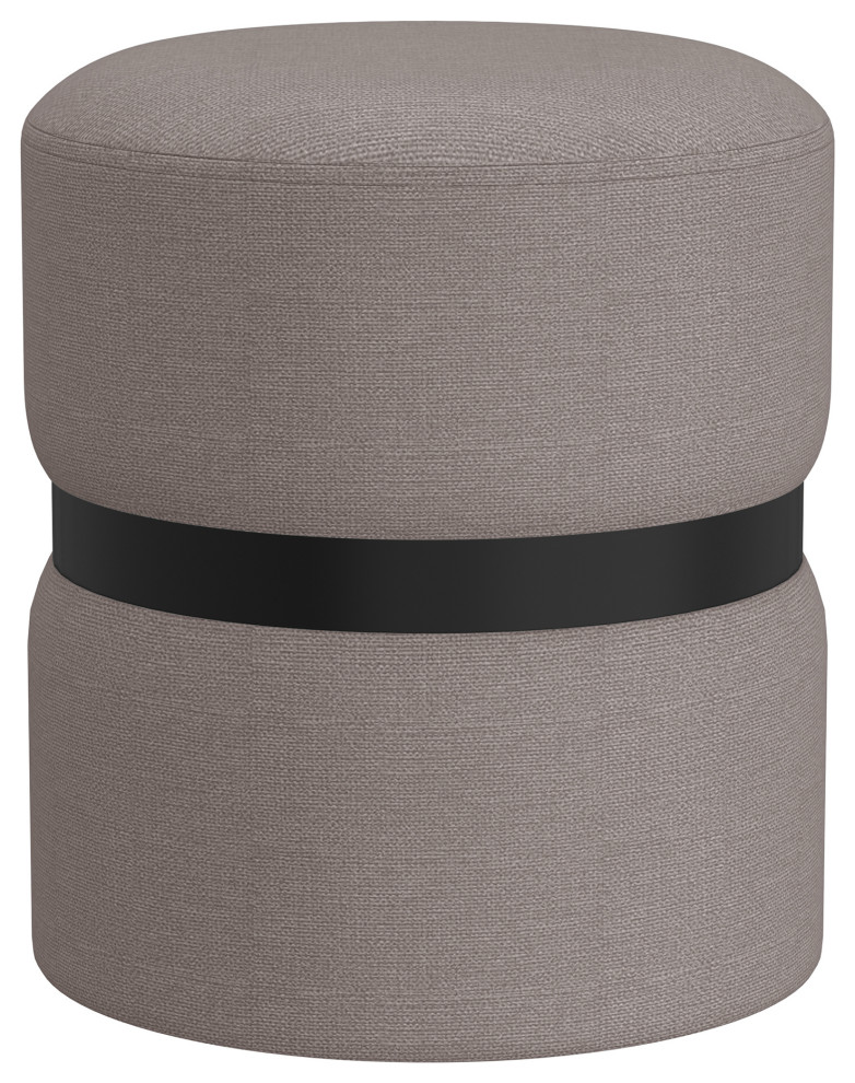 Add a dash of glamour to any space with this upholstered ottoman. The contemporary, minimal design allows it to be useful in small spaces or be functional as seating in a dressing room or for a makeup vanity. With a matte black metal "belt", this ottoman isn't one that just accentuates its living area but instead highlights it with an elegant and stylistic atmosphere all its own.
