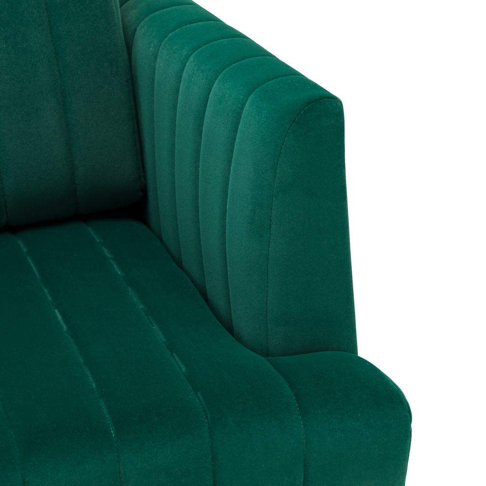 This armchair is modern and minimalist with a stunning style statement. Its channel-tufted design brings impressive style and sophistication to any lounge area. The velvet fabric of this armchair is soft and plush, while the back cushion adds more support to your back so you can forget about your fatigue after a long day of work. The built-in foam and sinuous pocket spring won't collapse even after multiple uses. The golden metal legs add the final touch of glamour while you don't have to worry about its weight-bearing capacity. The unique design of this armchair creates a lasting piece for your home.