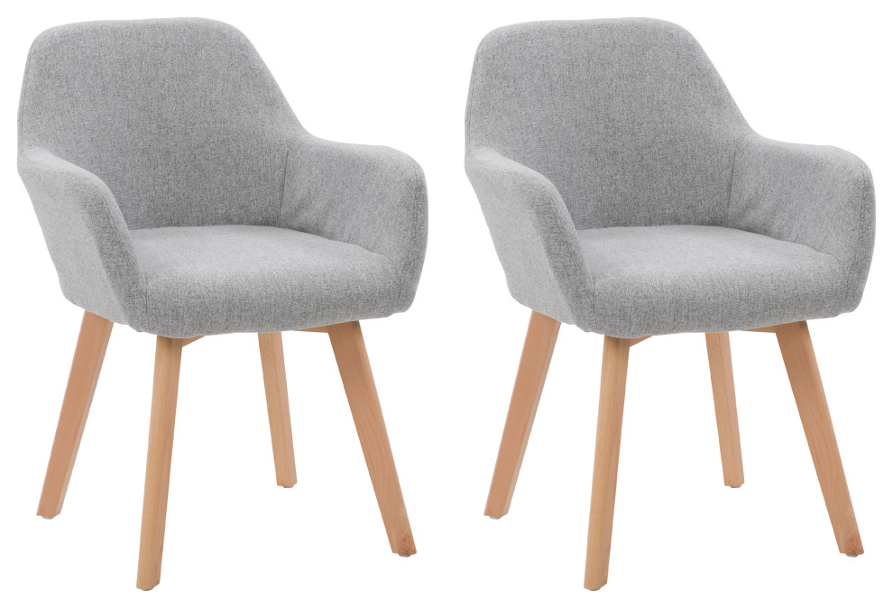 This side dining chair features a slightly curved silhouette and light wood legs for a mix of mid-century with a contemporary Scandinavian touch to your dining space. The sturdy light wood legs support a soft yet durable twill style textured fabric. This chair is a multi-purposeful piece and can be used as a dining chair, accent chair, vanity chair, and more. The padding on the back and seat will have you seated in comfort. Simply attach the legs and take your seat!