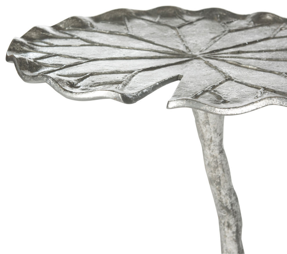This contemporary sculptural side table was created for the design collector. Its silver finish highlights each dramatic curve and crevice of its floral-inspired form, making a grand artistic statement in any room.