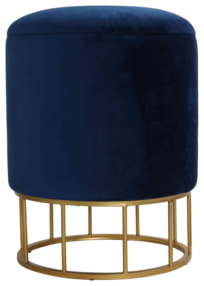The Cortesi Home Celestyn Storage Ottoman is as clever as it is stylish. Featuring a plush cushioned top and a spacious storage compartment for items that still need a home. The soft blue velvet fabric paired with gold metal base bring a sophisticated contemporary feel into any room, and is perfectly paired with any decor style. The high density foam cushion is stylish yet comfortable, making the ottoman perfect as extra seating for unexpected guests, or a place to put your feet up after a long day.