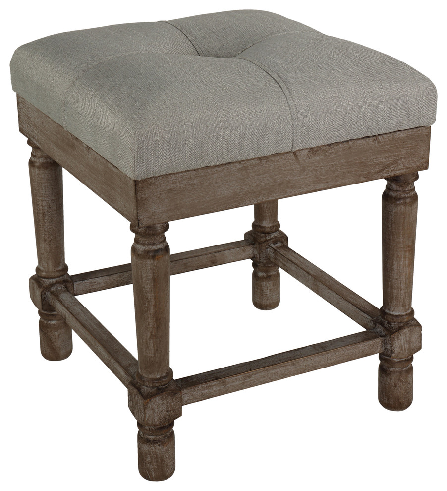 Cozy contemporary style with a rustic twist comes to life with this square beige ottoman from Cortesi Home. The light colored cushion paired with the driftwood finish wooden legs are the perfect addition to any decor. This stool/ottoman also features a four-sided foot rest to ensure maximum comfort while sitting or changing shoes. The high density foam cushion is stylish yet comfortable, making the ottoman perfect as extra seating for unexpected guests, or a place to put your feet up after a long day.