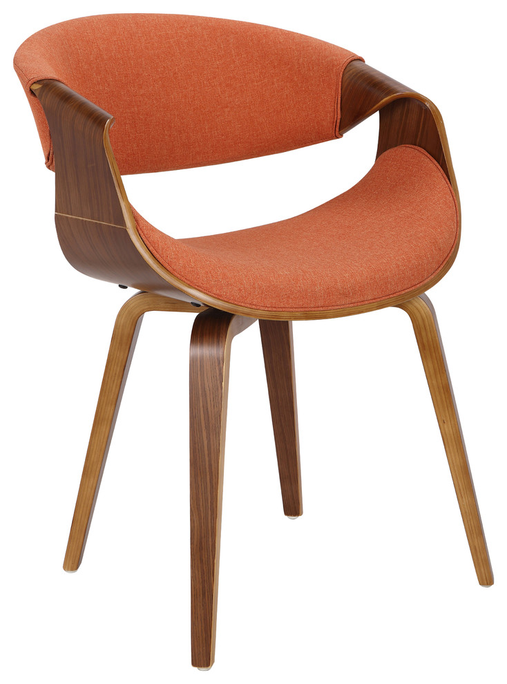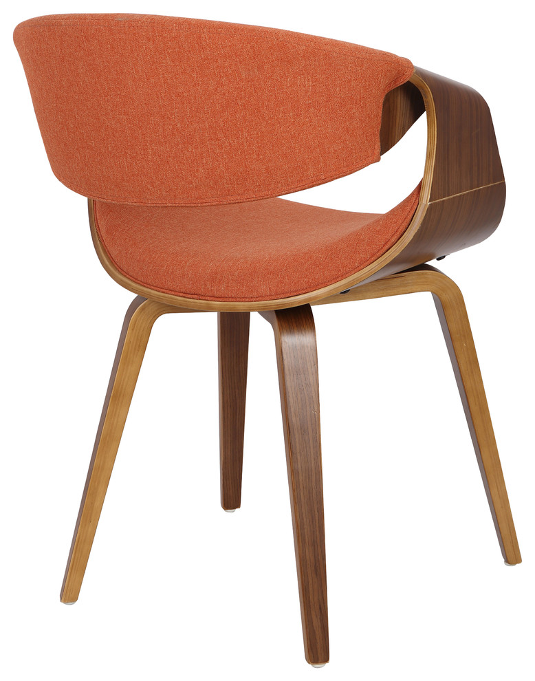 The LumiSource Curvo Chair proves retro never goes out of style. The refreshing profile provides an open airy look while the curved wood accents and woven fabric upholstery add a modern flair. Use for dining or as an accent chair.