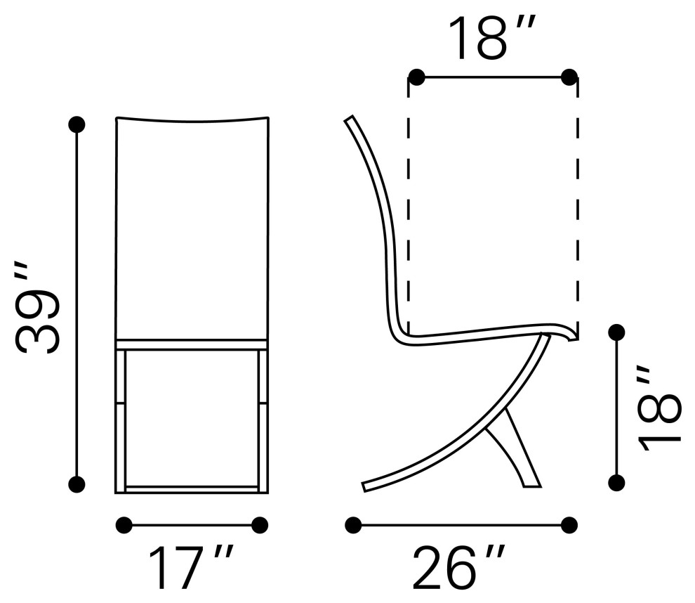 Probably the most comfortable and well-thought out dining chair of our collection, the Delfin chair has a slim silhouette that belies its comfort. It sits on chromed steel tube frame that has a slight reclining motion. A great chair for a great meal and after dinner conversation.