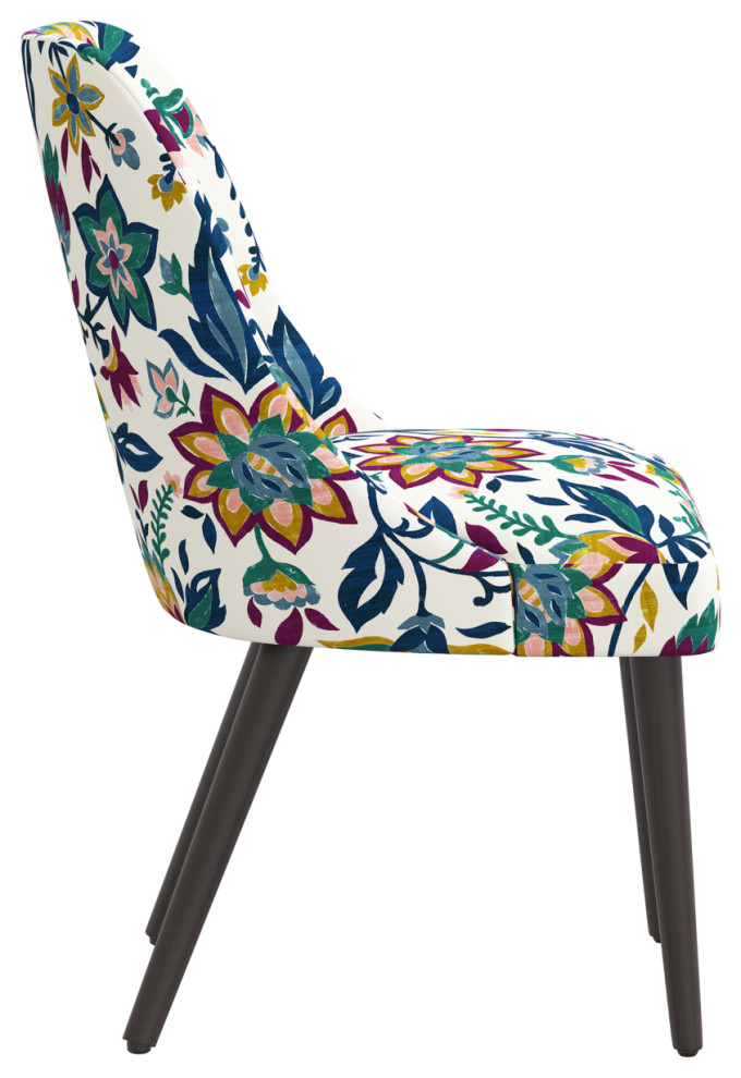 There's a nearly endless appeal to this rounded Mid-Century Modern dining chair design. The hand upholstered fabric and artfully tapered wooden legs are tasteful and subtle, and the piece is manufactured in Illinois. Made to order and easy to assemble, the freedom that an armless chair design offers along with a sturdy frame make it a sensible choice without being boring. A compliment to any dining room table or office space.