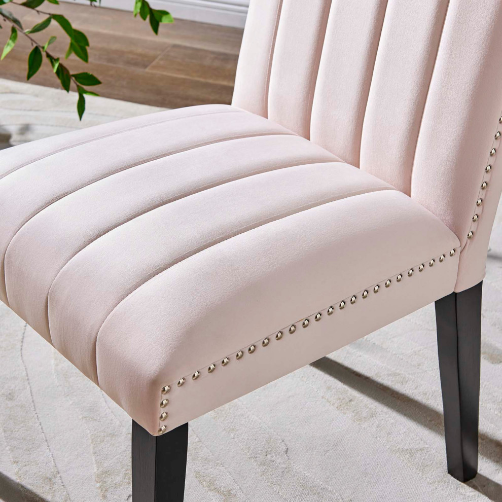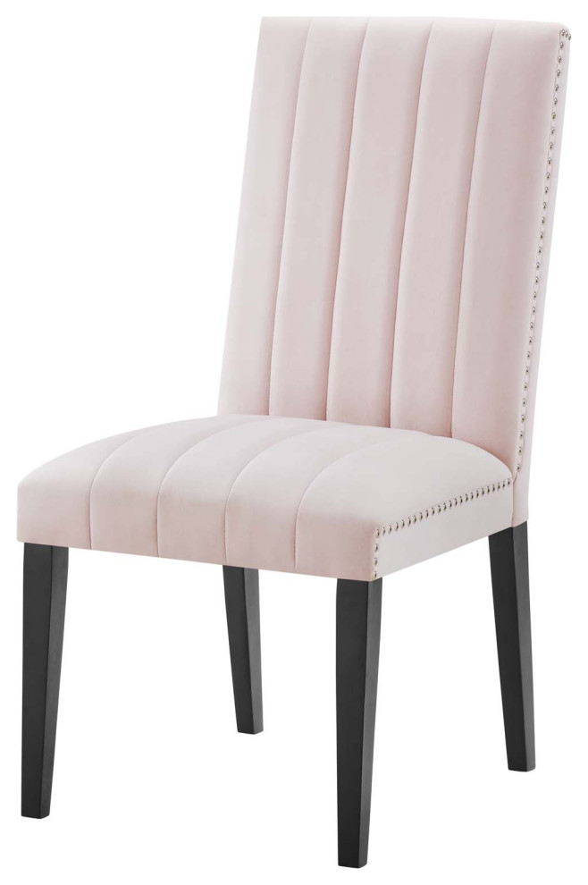 Soak up moments of joyful gatherings with the Catalyst Performance Velvet Dining Side Chairs - Set of 2. Abounding in luxe modernity and glam deco style, this dining chair set features vertical channel tufting and nailhead trim. These upholstered Parsons chairs are covered in soft, stain-resistant performance velvet and feature dense foam padding and a sinuous spring support system for a premium seating experience. A beautiful addition to the dining table, these velvet chairs can also serve as desk chairs or accent chairs in the living room. Includes non-marking foot caps. Assembly Required. Weight Capacity: 331 lbs.