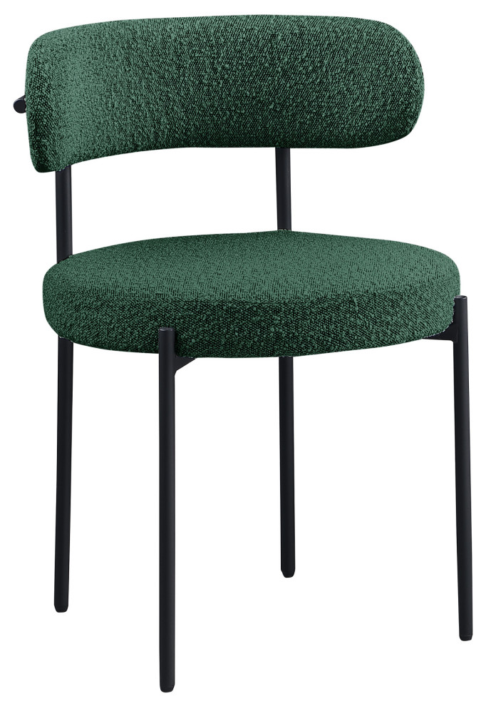 Introducing Dobby, the contemporary dining chair that combines style and comfort in one sleek package. With a sturdy metal frame and fluffy upholstery, the Dobby dining chair offers both durability and comfort for your dining space. Its curved back provides ample support, while its boucle fabric pops with a modern feel. Whether you're hosting a dinner party or enjoying a casual meal with family, the Dobby dining chair is the perfect chair for your dining room or kitchen. Experience the perfect combination of style and comfort for yourself.