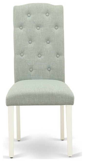 - Parson chairs include baby blue color linen fabric and linen white finish legs of these which provides a special color fusion to give a new style to your dining-room or living area.