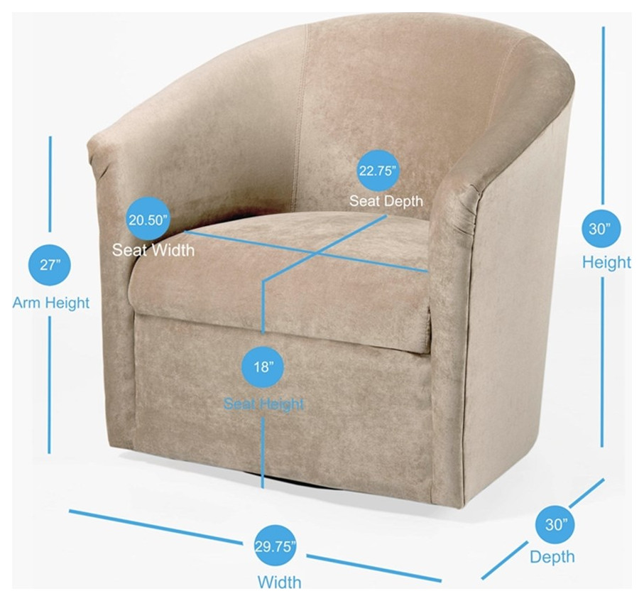 The Elizabeth Beige Sand Microfiber Swivel Chair will be the perfect accent to any room. The Elizabeth is fun and comfortable with a swivel base for added function. The luxurious microfiber has the look and feel of velvet without wrinkles or crushing. Highly durable, surpassing the 50,000 double rub test ensures many years of enjoyment. No assembly required, just open and place in the room of your choice.