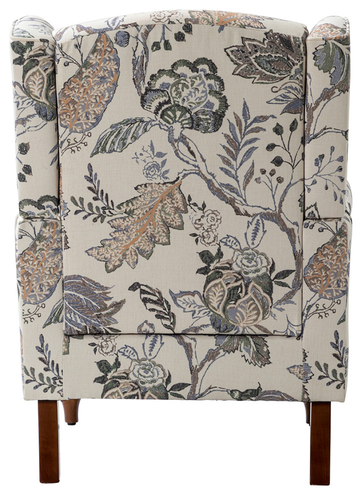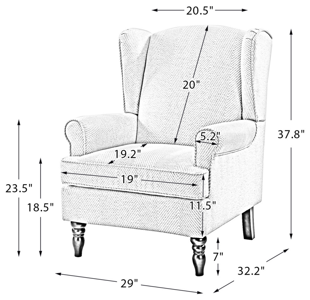 Form an approachable space into a prepared corner to provide instant rest for you, a traditional armchair is rich in characters and functions to complete your home ensembles. A cozy foam-filled seat, wingback design, built-in pocket spring, and unique patterns meet your demands, and its solid wood legs support the manufactured wood frame bringing you endless reverie. With a gentle silhouette, the soft armrests and backrest create a comfortable space for you. The best of both worlds, it's where comfort meets great looks. Awash in an attractive finish, it lends a touch of classic appeal to your arrangement, the best pick for dining room, bedroom, living room as well as any place you want.