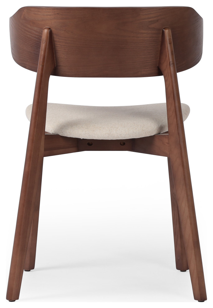A fresh, exaggerated take on the wing-back dining chair. Finished a natural hue, a mix of solid ash and ash veneer makes a modern and shapely seating statement with midcentury undertones. Complemented by a cushioned seat in linen blend performance fabric. Performance fabrics are specially created to withstand spills, stains, high traffic and wear, ensuring long-term comfort and unmatched durability.