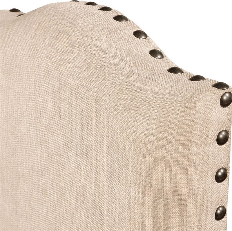 Complete your Farmhouse style dining room with the Kora Fabric Side Chairs by Furniture of America. Defined by its elegant camelback design, the beige fabric upholstered chairs feature solid wood and veneer construction in a light oak finish and are beautifully framed by nailheads and deliver outstanding comfort. Slightly tapered legs are reinforced by center supports, ensuring timeless usability. For a heart-warming Farmhouse style home, update to the Kora Side Chairs.