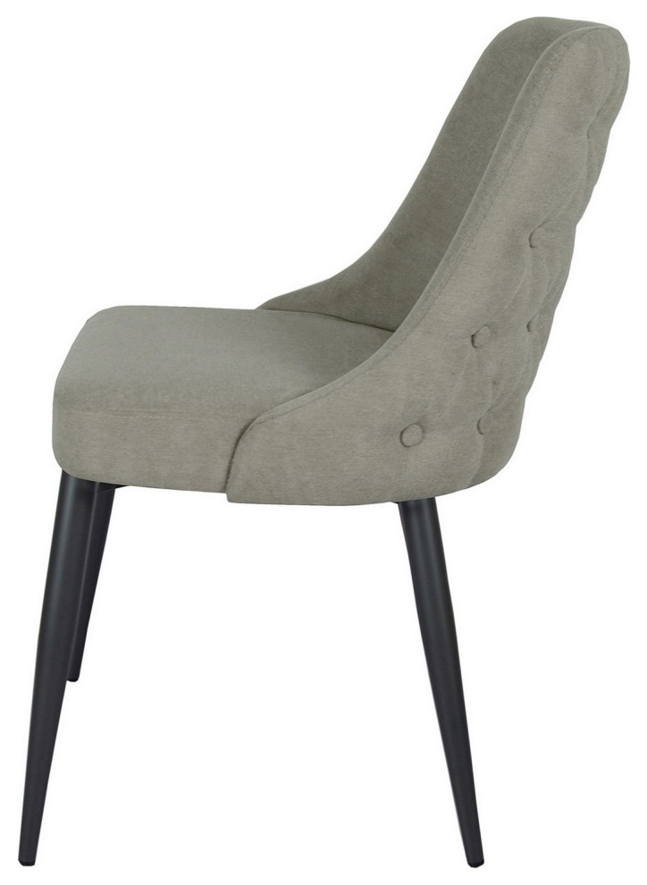 Bring mid century sophistication into your living room or dining room with this gorgeously stylish dining chair, available in a set of two. The tapered metal legs provide sturdy, reliable support, while the off-white fabric upholstery exudes elegance. This curved backrests feature button tufting for an excellent sense of class and luxury. Check out our Glom collection for matching items.