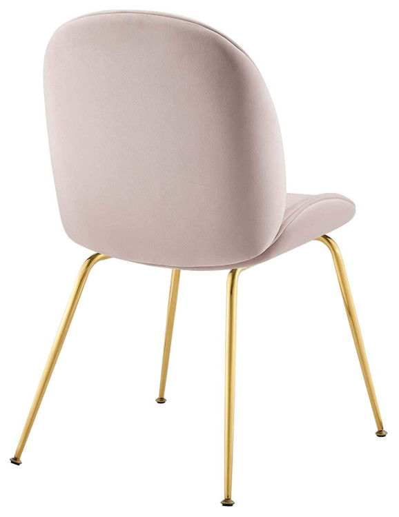 • Gubbi Dining Chair is a fully upholstered shell in velvet and conic base in gold metal