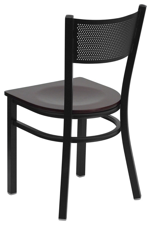 Create a first-rate dining experience by offering your patrons great food, service and simple furnishings. The metal chair is a popular choice for furnishing restaurants, cafes, pool halls, lounges, bars and other high traffic establishments. This chair is easy to clean, which is an important aspect when it comes to a business. This chair was designed to withstand the daily rigors in the hospitality industry, but will also provide a chic look to your home. The durable frame is stabilized with welded joint assembly. The floor glides help protect your floors and ensure smooth gliding. The simple and lightweight design of this chair will not disappoint, whether used for residential or commercial grade use. [XU-DG-60115-GRD-MAHW-GG]