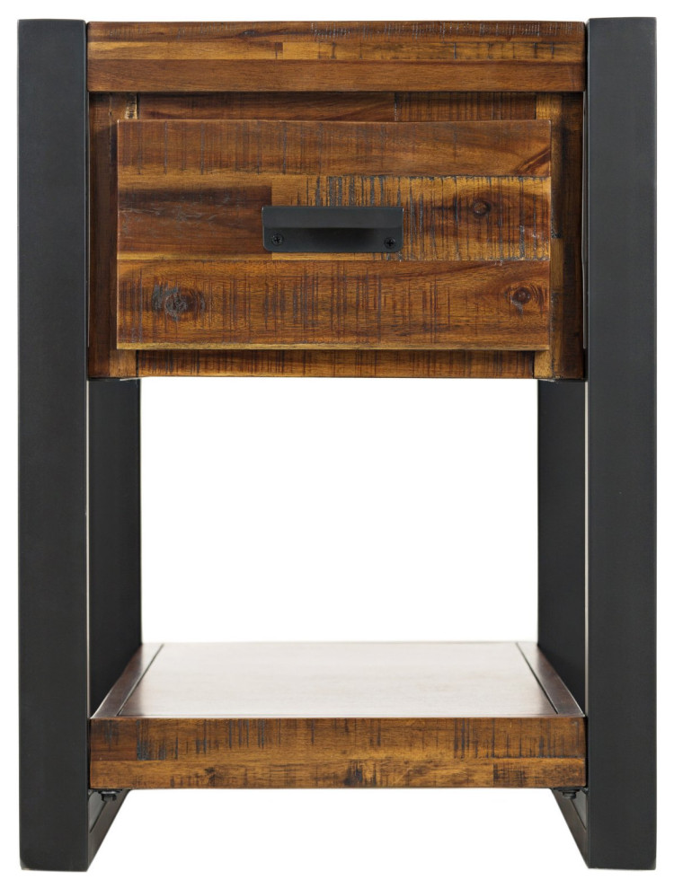Industrial End Table  Iron Frame With Acacia Wood Top  ampDrawer  Distressed Brown   Industrial   Side Tables And End Tables   by Decor Love  Houzz
