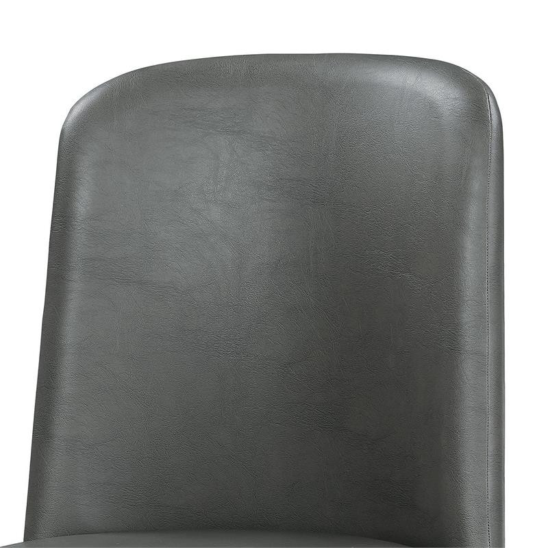 Add mid century modern style to your dining room while providing a spot to sit with this Set of 2 Dining Chairs. The chairs are supported by gray finished splayed tapered wooden legs and they feature faux leather upholstered seat and slightly curved backrest.