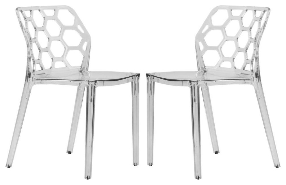 Bees and geometry love the shape of a hexagon - jump on the bandwagon and add the Dynamic Chair to your dining room, business or restaurant! This attractive organic shape makes a starring debut in contemporary design. These clear acrylic chairs are conveniently stackable, making them ideal for apartments, small spaces, or whenever easy storage is a priority. Because they are made from a single mold, the Dynamic Chairs are strong and durable. Each chair is complete with non-marking feet for floor protecting, with no assembly required.