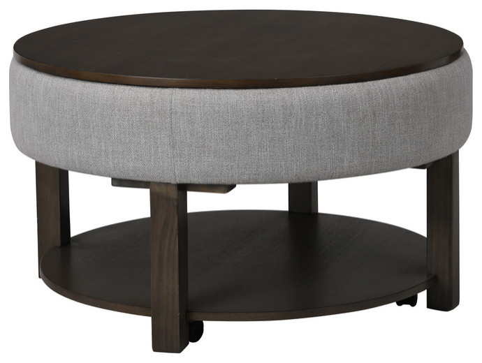 The complete Jonah collection is designed to look stylish while being functional to make everyday life much more convenient. Our stylish coffee table has a round bottom shelf for books, decorations, portraits, etc. We seamlessly integrated a lifting tabletop to make for a sleeker yet functional look. Underneath the coffee tabletop, there is a storage compartment. Coasters make it easy to move the coffee table from one spot to another simply by taking off the brake and pushing the table. The end table is round and has a bottom shelf as well.