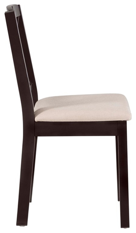 Bring your family together for a relaxing meal with the rustic style of this cross back dining chair set. Inspired by modern farmhouse design, the simple X back design and wholesome black finish promote a homey ambience whether at the dinner table or in your casual entertainment area. Clean lines and solid wood construction ensure that these chairs are durable enough for a busy kitchen, yet elegant enough for a formal setting. This comfortable pair is crafted with long lasting quality that easily complements both suburban and country home decor styles.