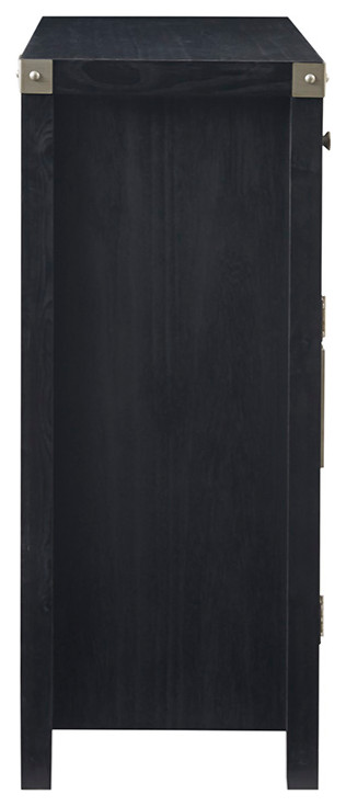 Add style and extra storage to your home with the Madison Park Ellie Accent Chest. This 2-door accent chest features an X-shaped design on each door with a large front drawer that offers ample storage space and versatility for your space. Magnetic door catches help keep the doors secure, and the removable shelf inside helps to accommodate larger household items. The exposed hardware flaunts a brushed steel patina finish that creates a striking contrast against the black wood finish to enhance the transitional design. Assembly is required.