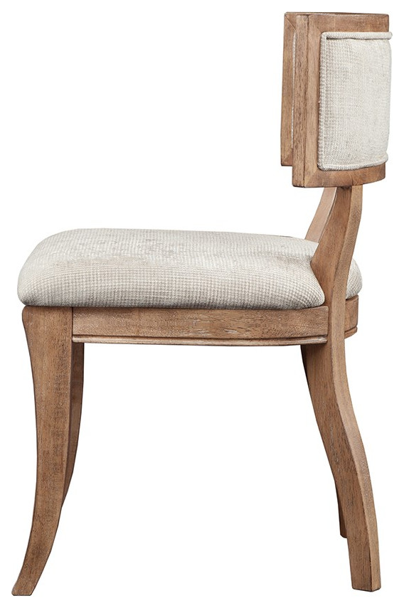 Classic design curved back dining chair in wire brushed birch finish with white ceruse gives the Marie dining chair the feel of a French antique. Solid hardwood and the unique fabric blend will bring visual appeal to your dining room. Assembly required.