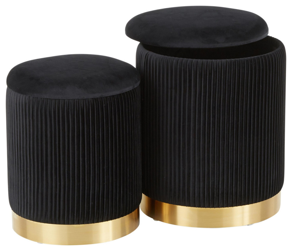 - Marla Contemporary Nesting Pleated Ottoman Set in Gold Metal and Black Velvet
