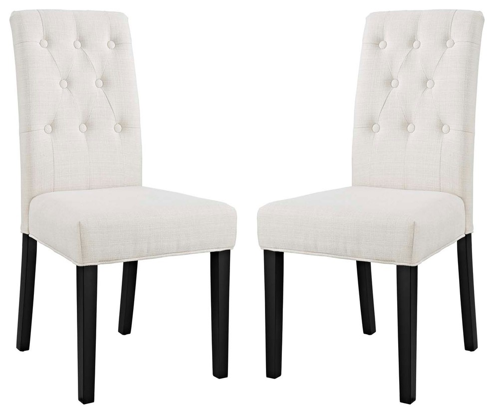Endow your dining room with something delightful. The Confer modern dining chair combines dense foam with fine polyester upholstery for a singular piece of elegance. Fashioned with eight tufted buttons and supported by stained hardwood legs, Confer is a richly designed piece that blankets your dining experience in a layer of magnificence.