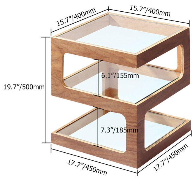 The walnut side table in the furniture collection subverts traditional design norms by merging wood and glass. The piece's substantial walnut wood with 3 Tiers S-shaped foundations, along with a geometric and sophisticated design, lends Tempered Glass, Walnut Veneer end table is a variety of characteristics.The Tempered Glass table features felt glides beneath its base, which gives it a clean appearance. As a corollary, it blends seamlessly into a modern or any design, and it may be used as an end table to highlight ornamental items or create a comfortable reading nook.
