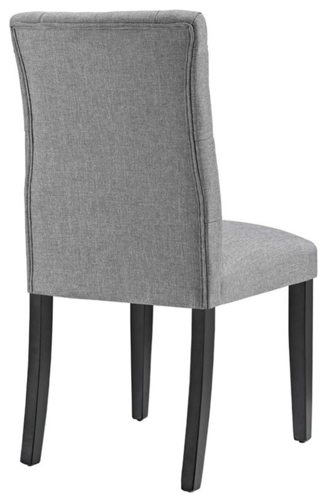 Bestow elegance with the Duchess Dining Chair. Chic and luxurious, Duchess features a stylish curvy form, richly tufted button back, dense foam padding, fine fabric upholstery, and wood legs topped with non-marking foot caps. Resonate grace and charm with a dining chair perfect for the modern home.