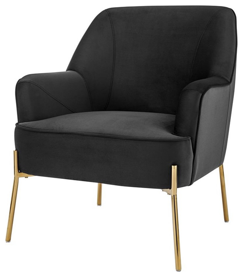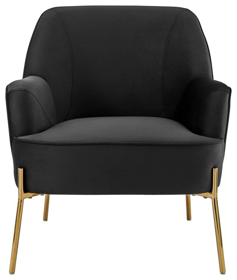 Add a touch of Glamour with Arianna Accent Chair. Highlighting a club style arm chair silhouette in velour fabric with generously proportioned backrest and seating, while its thin, painted gold legs convey modern sophistication. Easy Assembly, Available in Alamo Black and Alamo Terracotta. FSC Certified.