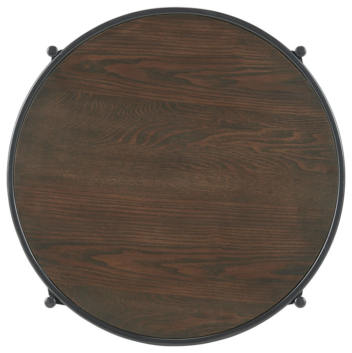The Picket House Furnishings Carlo End Table in Brown is the perfect addition to your living area. The end table has a rounded dark brown, wooden table top and black, iron table base. The natural, wood grain detailing on the table top will give you a warm inviting vibe. Tying in the black, iron table base with cross stretchers provides amazing support in securing the table top. The simplicity of this piece does not require much accessorizing however, arranging this table next to a love seat will feel comfortable. For a complete living room statement, add the marble and wooden coffee table for affect.