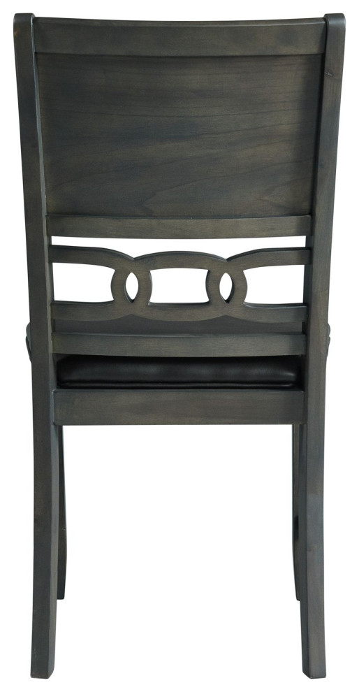 The Picket House Furnishings Taylor Standard Height Leather Side Chair Set will look fantastic in your living room! This set includes two side chairs that will look great around your dining table. This dynamic duo features a faux leather, upholstered seat and back that will give you ultimate comfort while you enjoy your meals. The back of the chair also features a cool, link design that instantly adds flair to this already stunning set. The gray finish pairs beautifully with the black fabric and a combination you'll enjoy year after year. Add this chair set to your home today for a look you'll enjoy day after day!