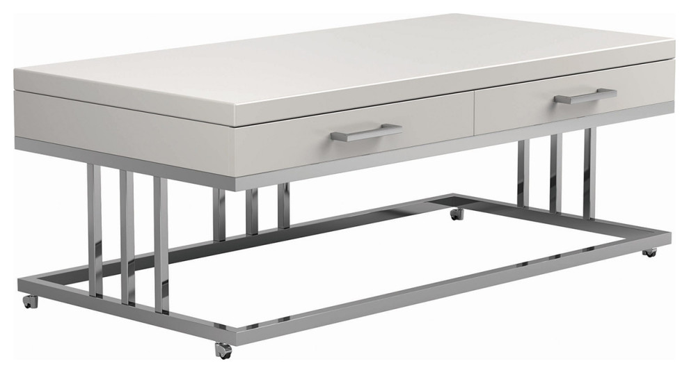 Enjoy coffee in your contemporary space with this coffee table. The clean lines declare the contemporary nature of the piece. Glossy white tabletop serves to amplify style and also match your chosen dcor. The table also includes smooth and closing drawers on full extension glides. Easy to clean, simply use water and a non-abrasive cloth to wipe down when needed.